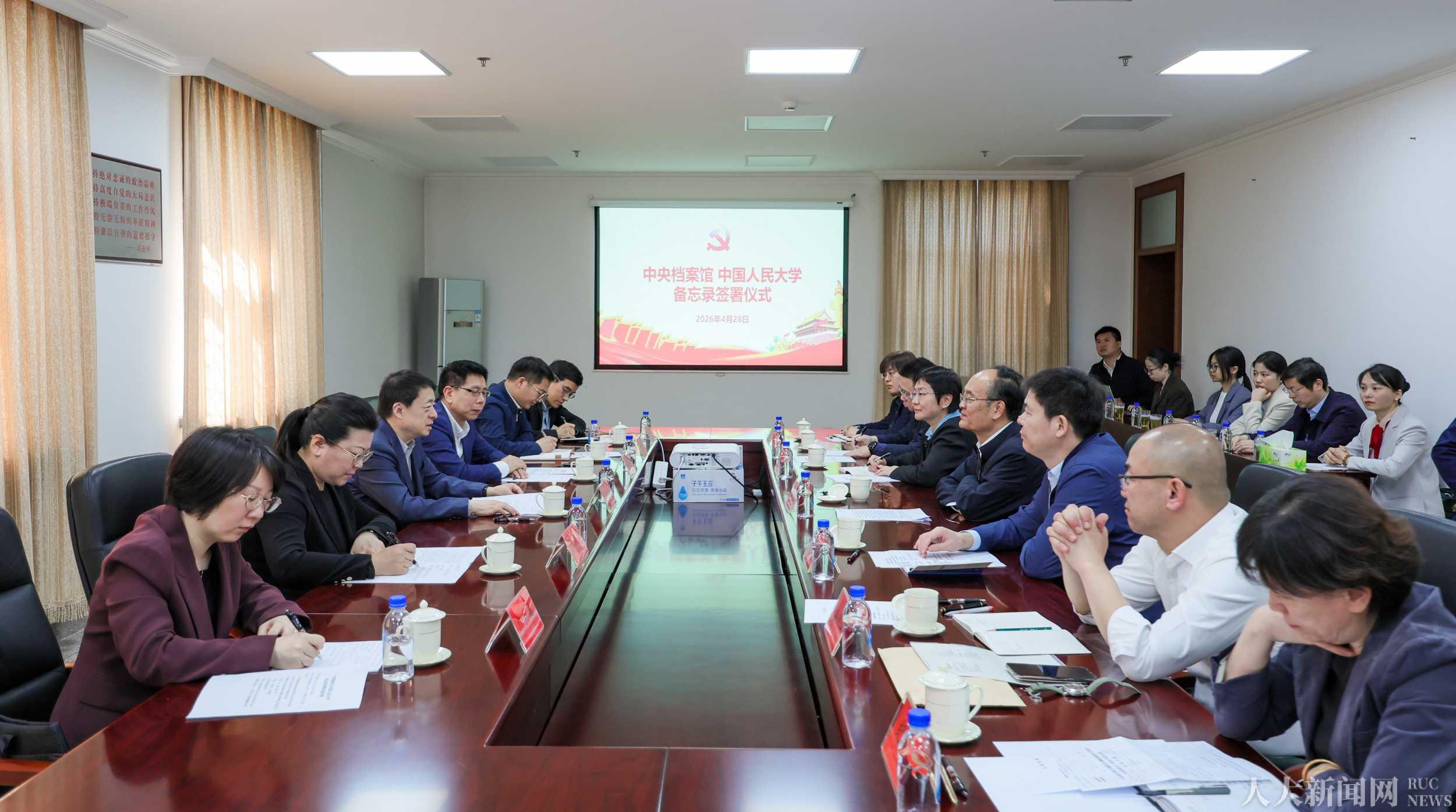 中国人民大学党政办公室、国内合作办公室、中共党史党建学院、信息资源管理学院和中央档案馆档案资料利用部、档案资料保管部、档案资料保护部等有关负责同志参加签约仪式。