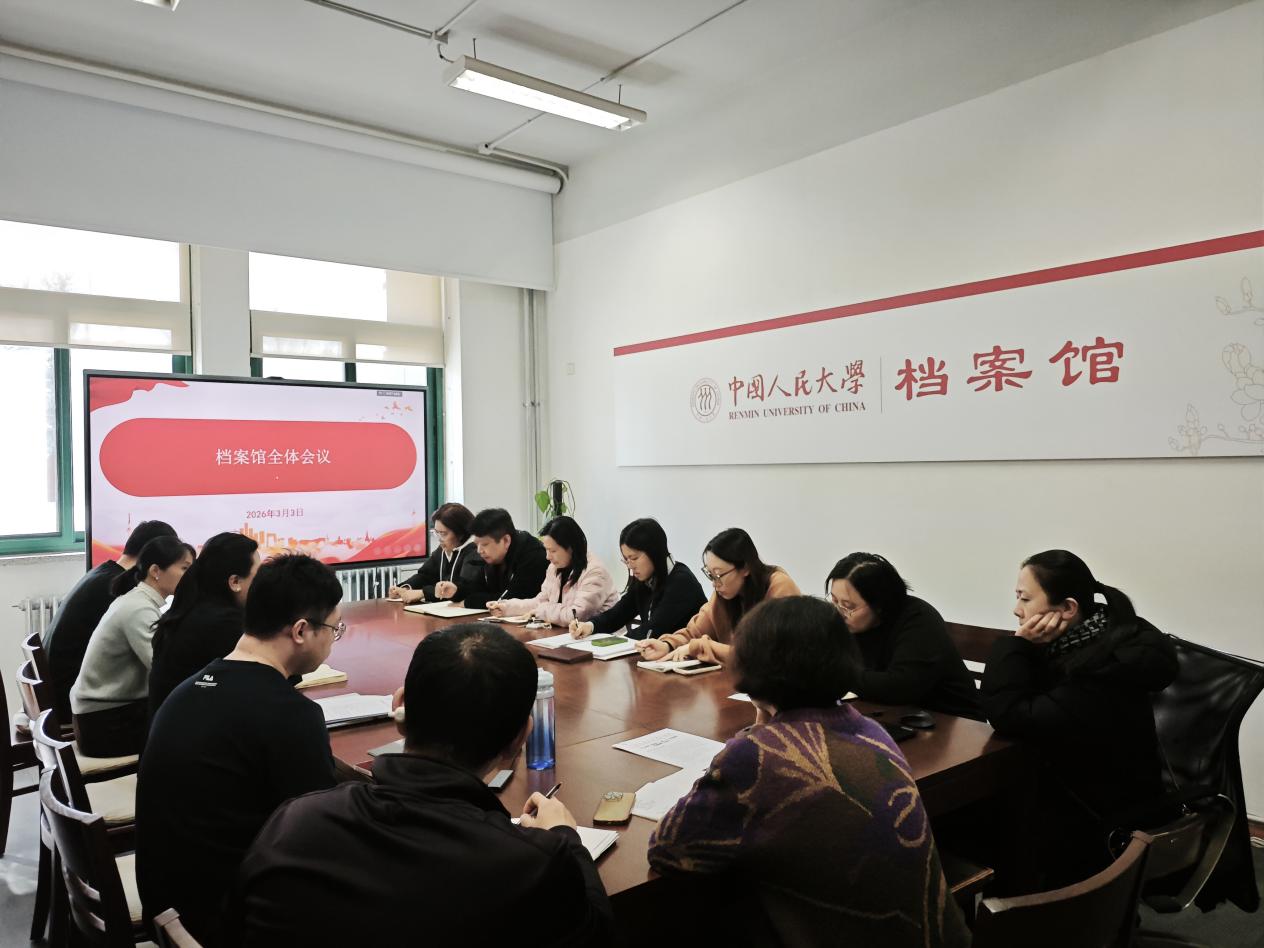 2026年3月3日下午,中国人民大学档案馆在藏书馆106会议室召开2025-2026学年春季学期第一次全馆工作会议。会议由档案馆馆长钟兰芳主持,全体人员参加。